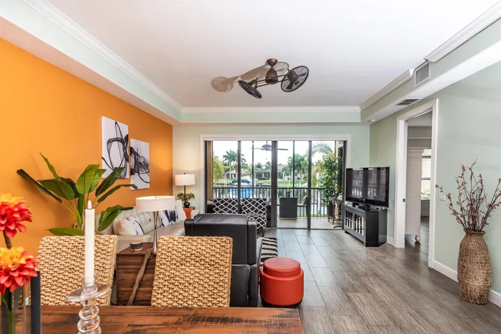 OFF-SEASON / SHORT TERM RENTAL”. Seasonal Rate is $4,500 per month plus tax. Enjoy your Florida stay in this luxurious, totally updated ground floor condo in Grand Bay of Punta Gorda Isles with a fantastic view of Sailboat Turning Basin. High ceilings, Granite counters, Wood cabinets, covered parking with storage space. Deeded dock #1 for larger boat and Sailboat access to Charlotte Harbor. Elegantly furnished. Expanded kitchen with breakfast nook and snack bar. Separate laundry room. Screened tiled lanai with a panoramic view and a heated pool also overlooks the water. The Lanai has a desirable Eastern exposure which gives morning sun and afternoon shade for your Maximum comfort. 12% taxes apply for all rentals of 6 months or less.