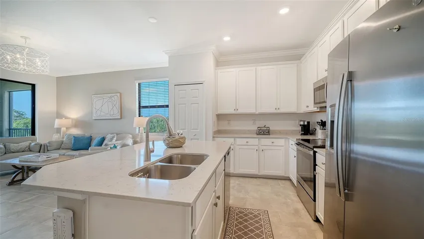 AVAILABLE OFF SEASON AT $4,000/month. BOOKED JAN/FEB/MAR 2027, AVAILABLE APR 2027 $7,000. WELCOME TO THE AMAZING LAKEWOOD NATIONAL GOLF CLUB! Comes with Golf Membership Transfer. Spectacular 3BR/2BA “Carolina Model” upper-floor (i.e., there is no one living above you!), high-ceiling, corner end-unit condominium (only two of its kind in each building!), which is the largest (approx. 1,500 gross sq. ft.) and most desirable condominium in the “Terrace Condominiums” at Lakewood National. Upon entering the condominium, you immediately appreciate the ten-foot ceilings and the open-concept floorplan of the full kitchen, dining room, and living room with southern exposure. The kitchen features all stainless-steel appliances and a large center island where you can create and enjoy your favorite culinary delights! Situated on the third floor with no one living above you, the living room, the primary suite, and the adjoining lanai are bathed in sunlight all day and reveal a breathtaking panoramic premium view of three tranquil lakes surrounding the 14th and 15th holes of the Piper Golf Course. The condominium has its own washer and dryer, and the rental also includes one reserved space under the building’s covered parking structure. Amenities include a Grand Clubhouse with restaurant and bar, state of the art fitness center, resort style beach entry lagoon swimming pool with outdoor grille tiki bar and poolside cafe/service, a full-service spa, tennis courts, bocce ball and more! Golf/Membership transfer available, expenditure is required at the on-site Tiki Bar/Restaurant (Alcohol Excluded), tennis courts, pickleball, and much more! The Club has full-time, on-site trainers and professionals for golf, fitness, and racquet sports to help you reach your sports and fitness goals. Lakewood National is synonymous with luxury and is simply one of the best luxury golf communities in all of Florida! **HOA APPLICATION/TRANSFER FEE $600+tax