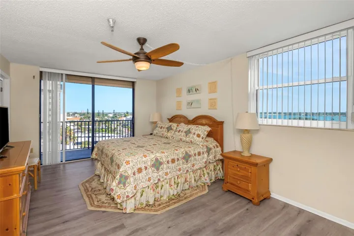 Incredible opportunity to enjoy your own piece of paradise. Your corner unit, 6th floor, beach view condo has 3 bedrooms and 2 full baths. Enjoy your breathtaking sunsets from your private open wrap-around balcony that faces the gulf, goes all along the side of the building, and faces the intracoastal for the sunrise in the mornings. On this corner of the building, you will never miss a sunset. As you step into your condo you will find an abundance of natural light pouring through your sliding glass doors that lead to your balcony, two from the living area and one in the master bedroom. Additional light comes from a large picture window. There is a separate dining area and living room and an additional area off the kitchen to eat or enjoy drinks while enjoying the view of the gulf. The spacious kitchen is off to your left with plenty of cabinets to please any chef and has a newer stainless steel dishwasher. If you need a private laundry room, this unit has it along with your full size washer and dryer. The large master bedroom features an ensuite bath with dual sinks. The second and third bedrooms are also a generous size, one with a queen bed and the other with a double/single bunk. Perfect for guests and families. Updates to the condo include new hurricane windows in kitchen and bedrooms, and new slider door facing the gulf. New Electric shutters were added in 2021 on all slider doors and the large picture window. These are perfect since they don’t create an obstructed view when enjoying time on your balcony and open/close with the push of a button. There is new flooring in all bedrooms and living room area and a new water heater. Outdoors, there is a wonderful pool with newer furniture and a large hot tub, both on the beach side of the building, and you are a step away from the sand on the beach. Keep your car cool under your own carport. Pet friendly. 30 day minimum rentals. This Madeira Towers unit comes turn key and ready for tenants. Unit is already rented Jan., Feb, Mar and April 2024…