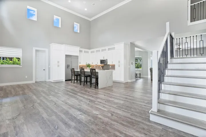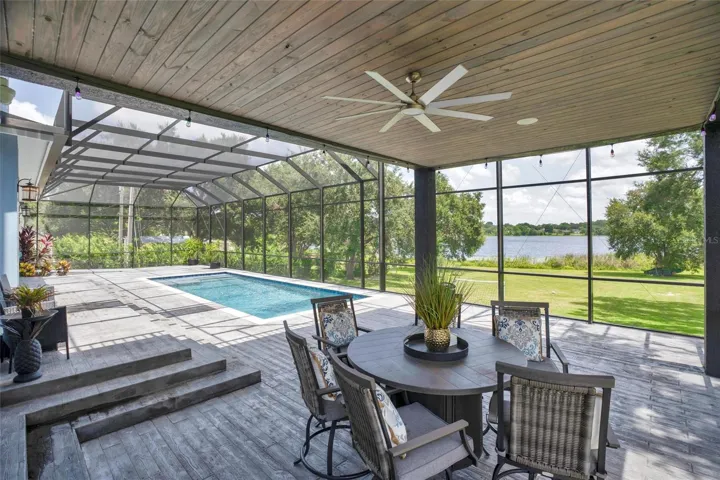 The outdoor space harmoniously blends relaxation and recreation, featuring a capacious screened patio deck, a glistening pool, a covered outdoor living room, and captivating views of the tropical lake surroundings. Don’t let this unparalleled opportunity slip away – secure your chance to experience this remarkable estate firsthand by scheduling a private tour today. Your dream of lakeside luxury living awaits.