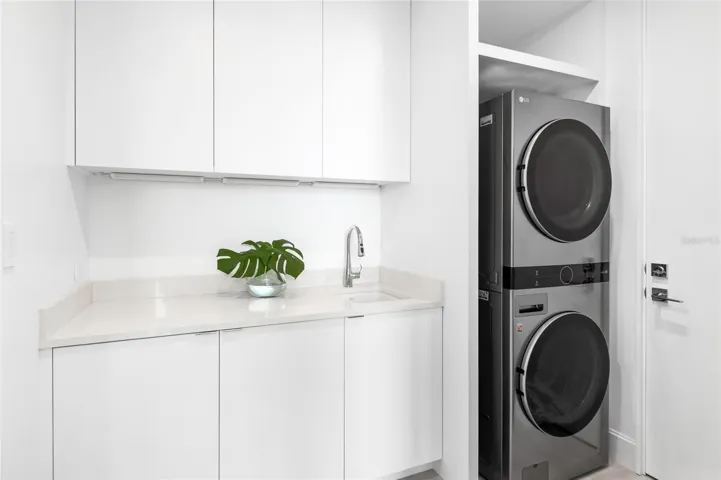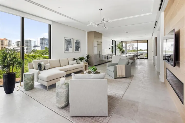 Brand-new, custom-built, and move-in ready, this full-floor condominium residence at En Pointe offers a rare blend of privacy, design, and elevated coastal living on Golden Gate Point. Set within a limited four-residence boutique condominium between the Ringling Bridge and downtown Sarasota, it delivers all the qualities of custom-home living with the ease and convenience of a lock-and-leave lifestyle. The residence captures views of Sarasota Bay, the marina, the downtown skyline, and the Ringling Bridge. Inside, the residence offers 2,439 square feet with 3 bedrooms and 3.5 bathrooms, plus two private covered terraces of approximately 350 square feet each—adding 700 square feet of exceptional outdoor living space. Designed as true extensions of the residence, the terraces easily accommodate open-air dining, a grill, and a generous lounge setting with TV hookup, creating an effortless indoor-outdoor lifestyle. Conceived in a neo-modern style by Echt Architects, the residence pairs refined craftsmanship with clean architectural lines and exceptional livability. A secured elevator opens directly into your private foyer, where walls of glass, expansive living spaces, and a chef-inspired kitchen create a residence that feels both sophisticated and welcoming. Spend evenings on the west terrace beneath the glow of the sunset, and begin the day on the east terrace with morning light over the marina—an elegant daily rhythm that feels distinctly Sarasota. The primary suite is spacious and serene, featuring a large walk-in closet, dual vanities, a soaking tub, an oversized shower, and direct access to the sunset terrace. Two additional en-suite bedrooms provide comfort and privacy for guests. Amenities at En Pointe include a heated saltwater pool, elevated decks for lounging and dining, two covered parking spaces, an EV charger, and ground-level bike storage. Just minutes to Main Street, St. Armands Circle, and Lido Beach, this is an exceptional opportunity to own a brand-new architectural condominium residence in one of downtown Sarasota’s most desirable settings.