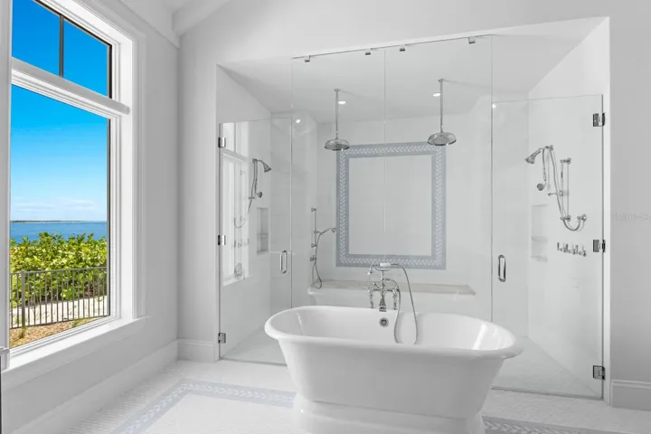 Brand New Construction Now Complete***Quite possibly the most unique waterfront location ever offered for sale in Southwest Florida! Sunrises and Sunsets will be enjoyed here in the winter months together with 180 degrees of Gulf to Bay cerulean waterscape, pristine beaches, nostalgic lighthouse view, and the Historic Boca Grande Pass – AKA ‘The Tarpon Capital of the World’! This exquisite BCB Homes custom built estate offers 8,100 square feet of living space and nearly 3,000 square feet of additional outdoor & garage accommodations. The generous floor plan headlines two magnificent Master / VIP mega suites which is a must see even for the most selective Buyer along with three additional luxurious bedroom ensuites, and a bonus room with full bath that could serve as the sixth guest quarters. In addition, the home showcases a waterfront club room for entertaining, an elegant dining room with decorative ceiling details, and the captivating Sea Watch lounge on second level overlooking the heart of Boca Grande Pass. The well appointed kitchen and family room combination will certainly be a popular gathering place offering panoramic water views and convenient access to the outdoor lanai, pool / spa, and waterfront garden. There is also a spacious den conveniently located off the main entry with a picturesque window overlooking the front garden. The interior finishes were thoughtfully selected by owner to ensure the highest of quality. Ruffino custom Maple cabinetry will be presented in nearly every room together with walnut engineered flooring, meticulously hand crafted cypress and poplar wood finished 12 foot + ceilings, Pompeii quartz & quartzite countertops, and hand laid Walker Zanger tile & stone flooring. Other interior selections will include Sub Zero & Wolf appliances, Lutron lighting control / audio surround, and a custom elevator cabin servicing all floors. The outdoor space is exceptional offering 184 feet of water fronting beachscape and direct access to the inclusive East Beach and Pier. Enjoy entertaining and cooking out in your well equipped outdoor kitchen poolside with convenient remote control shutters and bug screens for added protection against all elements. Exterior construction is just as impressive with storm security being the focal point. The all concrete block structure is fortified with Anderson 400 hurricane rated windows and doors together with a hand etched concrete stucco finish for superior strength and durability. Other exterior construction upgrades include remote hurricane rated shutters, Englert standing seam metal roof, and Clopay hurricane rated garage doors. Multiple outdoor terraces will enhance the exterior profile combined with custom decorative shutters, and the prominent Cupola representing the Architects vision of elegance. All current selections and finishes will be available upon serious inquiries. Hill Tide Estates is majestically positioned along the shores of Boca Grande Pass, Charlotte Harbor, and the Gulf of Mexico. The Gated Community features a private tiered beach, and a unique private fishing / observation pier exclusive for the 19 homeowners.***The photos containing furniture have been virtually staged for visual demonstration.