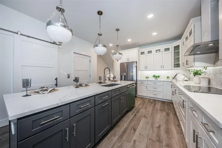 One or more photo(s) has been virtually staged. SPACIOUS, BRAND NEW LUXURY WATERFRONT CORNER-UNIT TOWNHOME FEATURES AN ELEGANT KEY WEST APPEAL, A PRIVATE SWIMMING POOL (RARELY FOUND IN TOWNHOMES/CONDOMINIUMS), AND A PRIVATE DEEP-WATER BOAT SLIP! EXPECTED COMPLETION BY END OF APRIL 2024, WITH ADDITIONAL PICTURES TO BE POSTED BY MID-APRIL. Beautifully finished with superb, high-quality materials and exceptional craftsmanship, this expansive 4 bedroom, 3 bath, 3 car garage residence provides three separate balconies, generous storage and wonderful views. First living level boasts a sumptuous coastal contemporary kitchen with exquisite quartz surfaces, graceful tile backsplash, rich white cabinetry, a terrific SS appliance package and a lovely island bar with matching quartz waterfall. Appealing and convenient, the 1st living level guest bedroom is supported by a splendid full guest bath. You’ll love the views from your huge great room and its grand covered balcony overlooking the waterfront. Upper-level offers three bedrooms, including the impressive owner’s suite with oversized walk-in closet, multi-level ceiling, private covered balcony overlooking the waterway, and a plush owner’s bath with dazzling tilework, and large, luxurious walk-in glass shower enclosure. Bedroom 3 is sizable with a splendid private covered balcony. From your massive lower-level garage and storage area, step out to your private 325sqft covered and pavered deck – perfect for evening entertainment. Updated seawall supports a new composite deep-water dock. From here to the Gulf is a short five-minute boat ride. Fine 3-stop elevator, gorgeous designer fans and many value-added extras/amenities. A great location, within easy walking distance of the Capri Community Park, delightful dining and entertainment, and the world class powdersoft sands of Treasure Island beach. AN OUTSTANDING NEW CONSTRUCTION WATERFRONT VALUE! Buyer to verify all dimensions.
