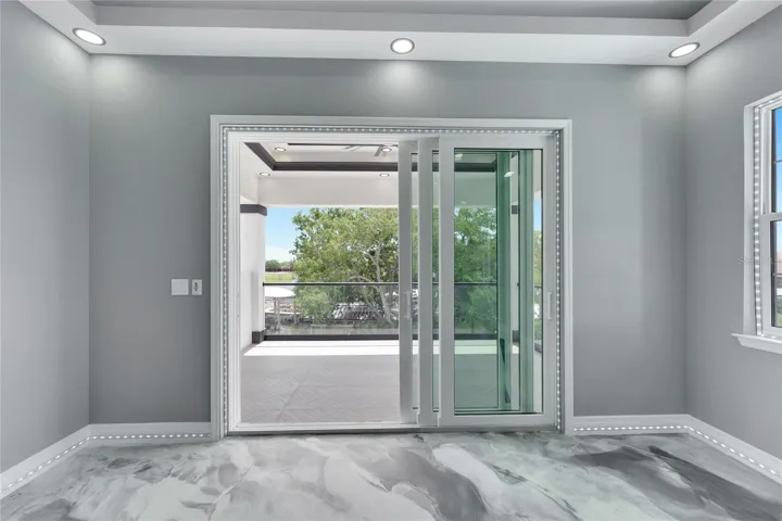 The essence of robust elegance is evident throughout. An outdoor kitchen equipped with a grill, fridge, and icemaker sets the stage for unparalleled outdoor entertainment. The owner’s suite serves as a retreat, boasting a standalone tub, expansive glass-encased walk-in shower, and a dual-sink vanity adjacent to built-in closets. A cozy fireplace in the master bath and a private balcony in the primary bedroom command views of the backyard, the canal, and Tampa Bay’s iconic sunsets.