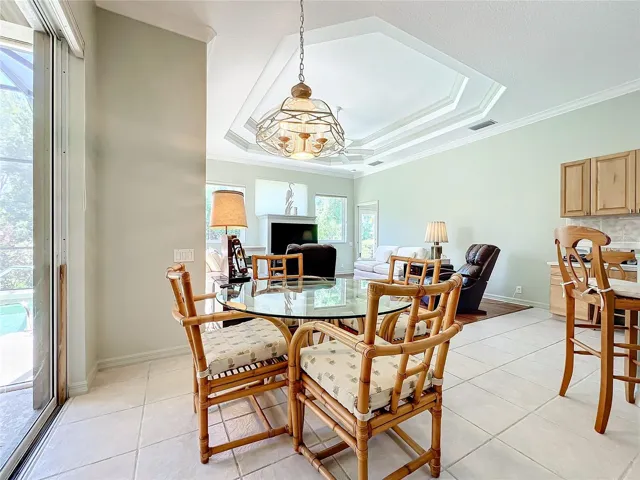 Outside, the block and stucco exterior opens to a spacious back patio connected by glass sliders, leading to a heated in-ground pool with a UV protecting screen enclosure – perfect for enjoying the Florida sunshine year-round.