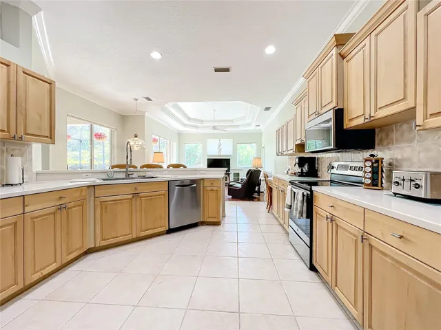 Welcome to peaceful living in the desirable gated community of Treymore at the Villages of Palm Aire. This Arthur Rutenberg built 4-bed, 3-bath home boasts a spacious floor plan designed for comfort and elegance. The seamless flow from the family room to the dining area and large kitchen creates the perfect space for entertaining and everyday living. Recently upgraded appliances and a brand new large farm sink surrounded by Corian countertops add a touch of charm to the kitchen.