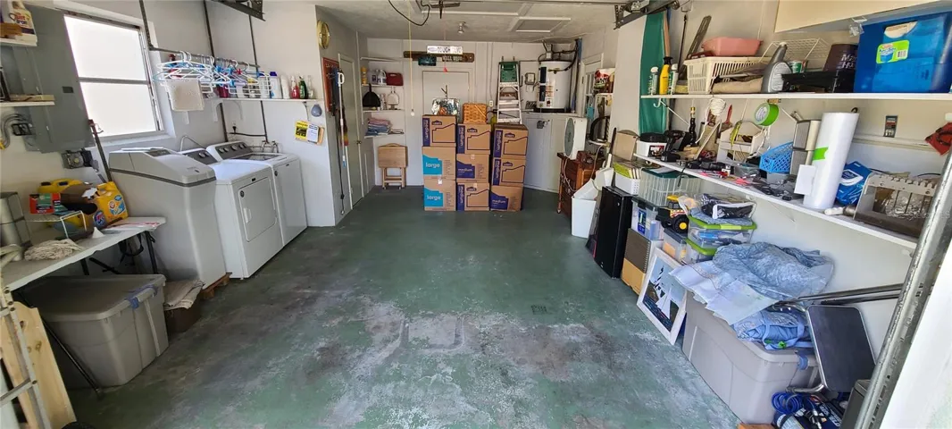 into the over sized one car garage there’s another bathroom with a toilet, sink and shower as a convenience when you’re working in the yard and