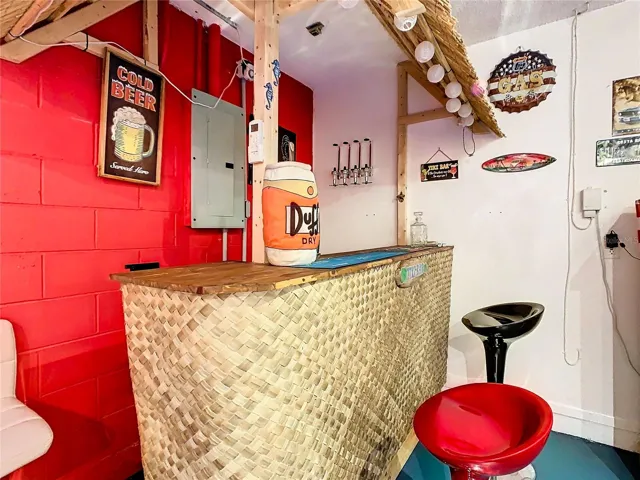 Transformed into a game room, the garage now offers endless entertainment possibilities with its pool table, foosball, and more. Additionally, a charming mini tiki bar adds to the ambiance, creating the perfect space for gatherings with family and friends.