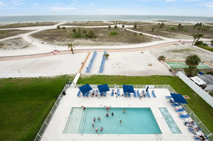 This beautiful top floor (6th floor) unit offers an amazing view of the Gulf of Mexico. The“PENTHOUSE LEVEL” elevation creates tangibly improved incredible & sweeping views. This top floor elevation eliminates all visual obstruction between you, the sand & the waves of the Gulf by virtue of towering above the palm trees & dunes of the exceptionally wide Treasure Island beach. The building was recently completed in October 2023. A front and center TOP floor 2-bedroom, 2 full bath with a Spacious balcony. Fully furnished, elegantly decorated with a modern and positive vibe and style. In-unit is a full-size washer/dryer, marble flooring throughout the living are, sleeper-sofa, comfortable LED lighting, all “TURNKEY” and ready to generate income. On the second-floor there is a sports bar, gym, large swimming pool and SPA, beach lounge area, & ROOFTOP LOUNGE. Just perfect! PET FRIENDLY. The Ocean Club has Ample covered & open parking (garage spot with purchase), 24-hour concierge, The proven rental management team & housekeeping are both located ONSITE. You will have an option to continue to utilize the on-site management. Schedule your showing between guest arrivals.