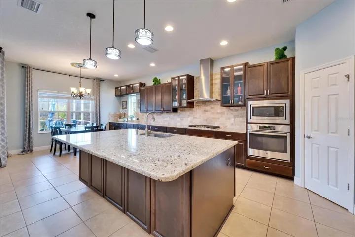 Luxury abounds in this stunning meticulously maintained original owner home. Situated on one of the most desired premium water view, conservation lots in the gated community of Lakeshore Ranch. Privacy like no other on the nearly ½ acre secluded lot at the end of the Cul-De-Sac. This 4082 sq. ft. pool home offers 5 Bedrooms, Media Room, Office, and 4 ½ baths. The award-winning Gasparilla is an innovative two-story design perfect for active families and most especially those who love to entertain. The dramatic foyer, dining room and great room feature soaring 20-foot ceilings, a gorgeous custom grand floor to ceiling stone gas fireplace. The gourmet kitchen includes an over-sized island, abundant solid wood cabinetry, gas stove, double oven, stainless steel appliances and a comfortable breakfast area. The owner’s retreat showcases a luxurious master bath with a garden tub, walk-in shower, large double sink vanity, and an over-sized walk in California Closet. Elegant open double stairway leads to the additional spacious bedrooms, 2 full baths and large Media room with balcony. Many upgraded features throughout the home include, custom trim work, freshly designer painted, ceiling medallions, crown molding, wood look ceramic tile. The expansive outdoor living area includes a covered lanai, outdoor kitchen, a screened in brand new saltwater pool, beautiful paver decking, and mature landscaping. From your fully fenced back yard enjoy watching the wildlife that frequent the conservation area. Total Serenity!