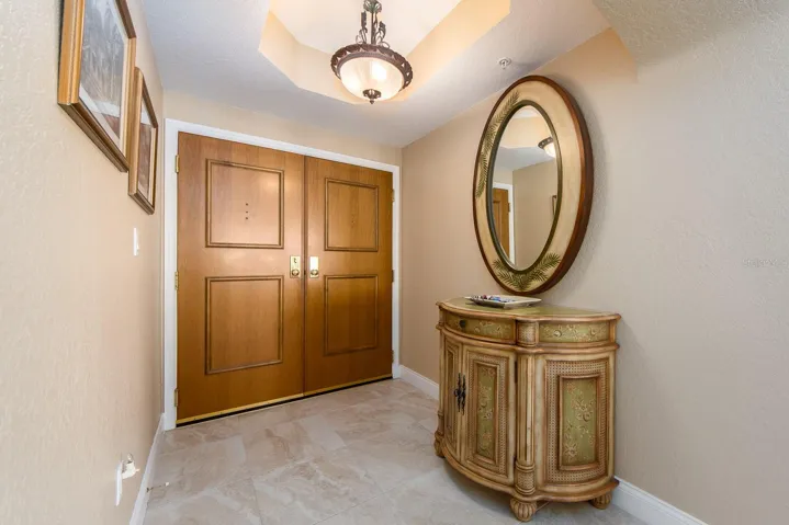 SANDKEY. This beautiful, well maintained Southeast corner residence has been recently updated featuring: neutral ceramic tile throughout, solid stone kitchen countertops, solid wood cabinetry, back flow unit installed in kitchen sink, hurricane storm shutters, murphy bed in bonus den room, new AC unit, new water heater, new washer & dryer, & duct work cleaned and disinfected in 2024. Balcony views from the primary bedroom view North Eastward to the intracoastal waterways, Sand Key bridge, Memorial cswy, and Clearwater / Belleair inland. The wrap around balcony (kitchen, living room, bonus room) views span across the intracoastal waterways, main inland, overlooking the pool grounds and out to the open Gulf of Mexico. The Grande’s superb amenities include: two swimming pools, large outdoor spa, cabanas, outdoor pavilion for your grilling pleasure, fitness center, tennis courts, spacious social room for gatherings or events, billiard room, concierge services, and 24 hour security. In addition, the Sand Key Plaza (directly across the street) houses small boutiques, several restaurants, and Sand Key Realty. Take a tranquil stroll on Sand Key beach, or travel 1 mile North to visit North Americas #1 beach. As the day comes to a conclusion, you will witness the most serene and majestic sunsets while relaxing by the pool side or your wrapped around balcony. Paradise awaits you at The Grande on Sand Key…