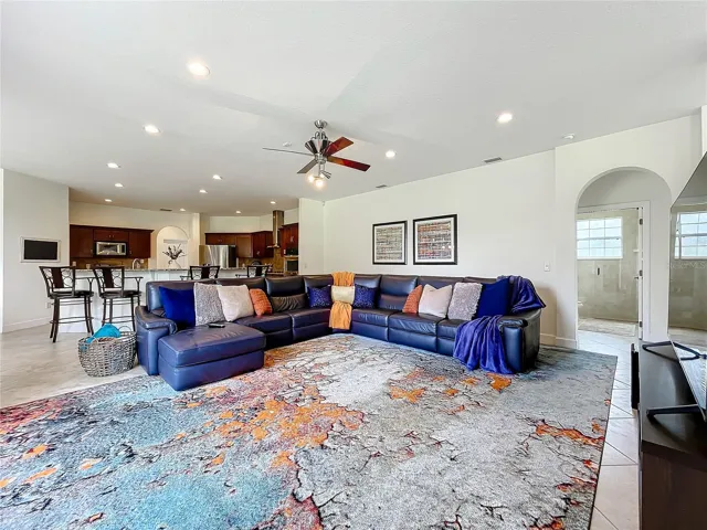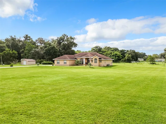 SELLER MOTIVATED! Seller offering up to $15,000 in concessions to use however you need! Welcome to this stunning custom-built home nestled on 5 acres in beautiful Bushnell, FL. Boasting 5 bedrooms, 3 bathrooms, and over 3,800 sq. ft. of living space, this residence offers elegance, comfort, and functionality. Upon entry, you’ll be greeted by a formal living and dining area featuring custom arches, 14′ tray ceiling and a built-in coffee/wine bar, perfect for entertaining! The primary en-suite, located to the right, is a spacious retreat with a tray ceiling, room for a nursery or sitting area, and private access to the lanai with serene pasture views. The large dressing area includes two massive walk-in closets, while the luxurious primary bathroom offers split vanities with granite countertops, a jetted spa tub, an oversized walk-in tiled shower, and a private water closet. The gourmet kitchen is an entertainer’s dream, equipped with wood cabinetry, stainless steel appliances, double wall oven, glass cooktop with a stainless steel hood, two islands, breakfast bar, and a large pantry. The adjacent dinette area opens to the family room, perfect for gatherings, with an additional bonus room currently used as a home gym. The home’s split floor plan ensures privacy, with two separate bedroom wings, each with two bedrooms and a full bathroom. Tile flooring and ceiling fans are featured throughout the home for comfort and style. Additional property highlights include a 14×12 workshop, a second well for irrigation, and a cross-fenced area at the back, currently used for cattle. Conveniently located near I-75, this property provides an easy commute and is just 15 miles from Brownwood Paddock Square in The Villages, offering a variety of shopping and dining options. Don’t miss the opportunity to own this exceptional home! Call today to schedule your private tour!