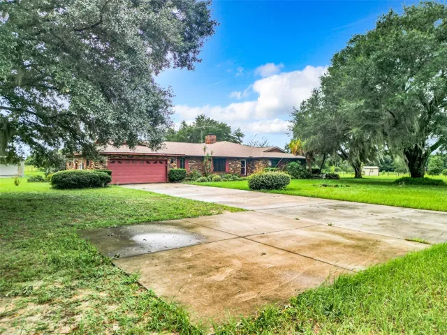 Welcome to this extraordinary opportunity to own 5+ acres of Privacy and Tranquility in this astounding family home. Take advantage of country living meanwhile remaining close to all the local amenities. This beautiful estate is less than a mile from the Villages, restaurants and shopping. Plenty of room to add a pool, a mother-in-law suite or other out buildings. The possibilities are endless. The spacious 5394 sq. ft. home offers a beautiful foyer area, large 3 bedrooms and 3 full baths with the possibility of a forth bedroom with closet. The large master suite offers a walk in tub and a walk in closet with maintenance free hardwood flooring in the bedroom and tile in bathroom. The interior layout includes a sunken formal living room, formal dining room, Family room with mosaic tile art in the middle of floor and features a stone wood burning fire place. There is also an eat in kitchen with salon doors leading into formal dining room and bay windows with seating. Also included is a Florida room under air with plenty of windows, an inside storage room, a library/office room and a laundry area near the 2 car garage. The hot water heater is less than 1 year old. Exteriorly, there is a whole house generator, a detached two car garage or it could be a storage area or a man cave. The possibilities are endless. There is also a small screened house that could be a green house. There are two porches out back. One is screened and the other is not. Plenty of room for family gatherings and Bar-b-Ques or sit and enjoy the manicured yard.
