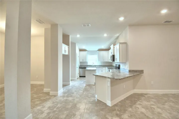 Under Construction. This 1415 square foot Home is a stunning home design that offers a perfect balance of style and functionality. With 3 bedrooms and 2 baths, this home provides ample space for comfortable living. The open-concept layout seamlessly connects the kitchen, dining area, and living room, creating a spacious and inviting atmosphere. The modern kitchen is equipped with high-quality appliances, a large counter, and plenty of storage space in the pantry and cabinets. The bedrooms are well-appointed and provide privacy and relaxation for family members. The maters suite is located in the back of the home to ensure privacy. The additional three bedrooms are placed on the opposite side of the home and are versatile to accommodate family and guests or a home office. The lanai in the back extends your living space outdoors and provides the perfect place to host gatherings or simply enjoy the weather. With its thoughtful design and attention to detail this is a remarkable choice for those seeking a beautiful and functional home. CUSTOM EXTERIOR includes 30-year mildew resistant dimensional shingles Termite treated with Bora care-renewable after 1st year, Low maintenance aluminum fascia and vinyl soffit Professionally landscaped yard, Insulated, Decorative coach lights on garage and front entry. EXCEPTIONAL INTERIOR includes Stain resistant designer carpet, Recessed LED lighting in kitchen & family room, tile flooring in kitchen, laundry, foyer, and bathrooms. Prewired for ceiling fan and 4 LED discs in family room, Pre-wiring for ceiling fans in all bedrooms with dual switches, LED Disc, with rocker switches in all bedrooms. Generous walk in closets with ventilated shelving, 6 TV/Cable jacks or phone jacks, Vaulted ceilings, Wood Window Sills. Indoor laundry room with kitchen entry and garage entry. 5 1/4 baseboards throughout,5 panel smooth finish interior doors with brushed nickel, lever door handles. Garage door opener prewire, Two tone Interior paint package, Custom cased openings, GOURMET KITCHEN includes Designer recessed lighting Custom wood cabinets with adjustable shelves Included 36” upper cabinets with crown molding and custom bump out Stainless steel double bowl sink. Single lever brushed nickel faucet with pull out sprayer, Energy efficient multi-cycle dishwasher, Smooth top stove with self-cleaning feature, Space saver microwave above the range, Ice maker connection. Spacious pantry with ventilated shelving. LUXURY BATH AREA includes Easy care garden tub/shower combination in master bath, Elongated toilets, pull out drawers in most cabinets, Dual rectangle sinks, upgraded brushed nickel faucets ENERGY EFFICIENCY includes Double pane insulated windows with tilt-in sash for easy cleaning, Energy efficient Whirlpool appliance package, R-38 ceiling insulation, Continuous soffit attic ventilation, Off ridge roof ventilation,15 SEER Heat Pump with digital thermostat Low volume flush toilets.