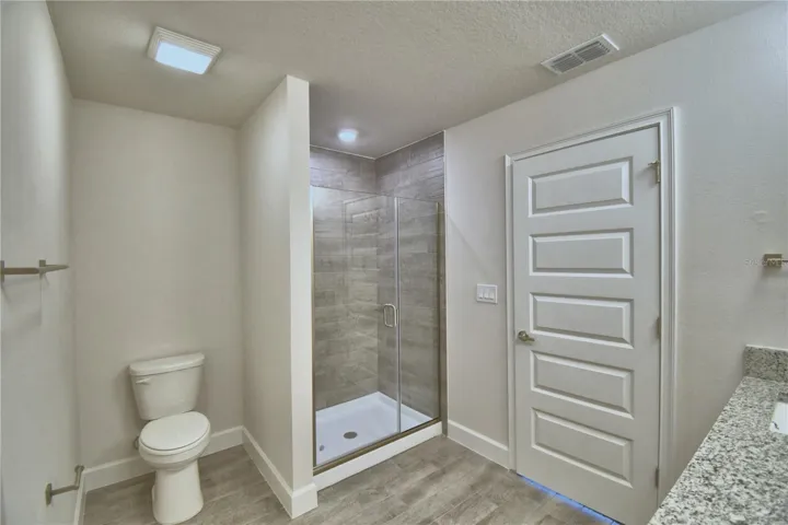 As you enter, you’ll be greeted by a bright and open living area that flows seamlessly into the dining room and kitchen, complete with granite countertops, plank tile flooring, and a covered paver lanai perfect for outdoor enjoyment. The primary suite includes a spacious ensuite bathroom with a double sink vanity and a tiled shower with a glass door, as well as a generous walk-in closet.
