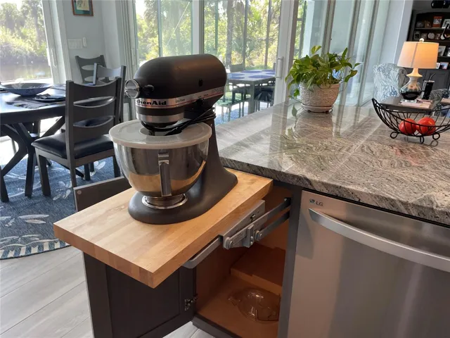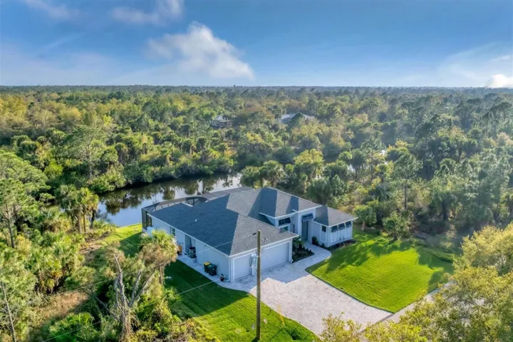 Stepping through the front door your eye is drawn to the beautiful, spacious interior, the pool right outside, and the water view beyond. Your first impression will be “Wow”, and the closer you look the more you will love it.This three-bedroom two-bath house has the open floor plan you want with the large kitchen, living area, and dining area combined as one. Slide the impact doors open and enjoy the large covered lanai for even more room. The owner’s suite is located on one side and the laundry room, garage, second bath and two bedrooms are on the other. The den is just to your left as you enter. This is a perfect place for someone who works from home or you could set up a cozy sitting area away from the main living area.This DM Dean home was completed in 2023 and is better than standard new construction in so many ways. If you purchase this home you will know the exact cost and it will be ready for you to move in the day you close. These are significant improvements over the new construction process. Beyond this, the list of upgrades is long and impressive. All are available in a list for you to review; many are obvious as you look through the house. The building is very energy efficient due to the spray foam insulation and impact windows. The flooring is upgraded plank look porcelain tile throughout. All shower entries are wide and with no barrier so it is easy for everyone. This house is equipped with a 500 gallon propane tank that is used for the whole house generator that will come on automatically when needed. The propane also feeds the fireplace, cook top, oven, and dryer. There custom closets, central vacuum, and upgraded appliances and cabinets speak to the overall quality of the home. This house is on a quiet street already and this property is a triple lot to ensure your privacy in the future. Audio/visual recording equipment may be in operation inside and outside the house.