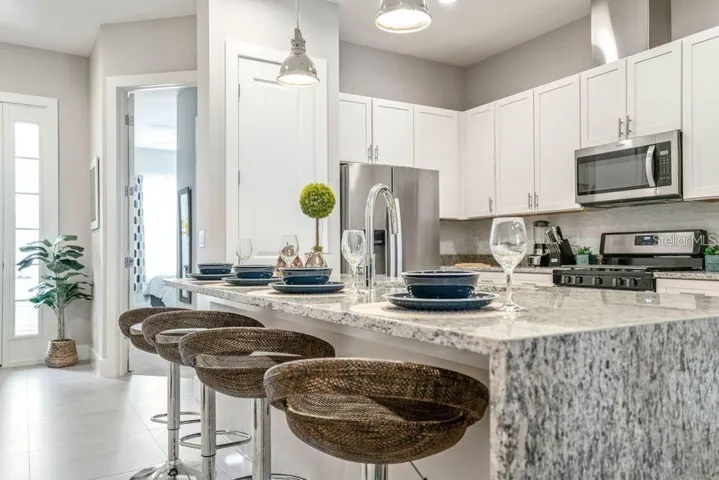 This gorgeous home is offered fully FURNISHED. The owner may include all utilities in the rent (internet, cable TV, and trash collection); however, in that case, the rental price would be $3,300 per month. As soon as you enter, you will find a suite on the first floor, with the three additional bedrooms located upstairs, along with the washer and dryer. This beautiful property is ideal for corporate executives looking to live or stay in the Orlando area during 2025. Summerville Resort is a gated community with amenities designed to keep your family and friends entertained, including a clubhouse with a fitness center, a community pool with a spa, lounges, a playroom, and a playground. The location is unbeatable, with a Super Walmart nearby, as well as great restaurants, shopping, golfing, dining, and Magic Kingdom just 10 minutes away.