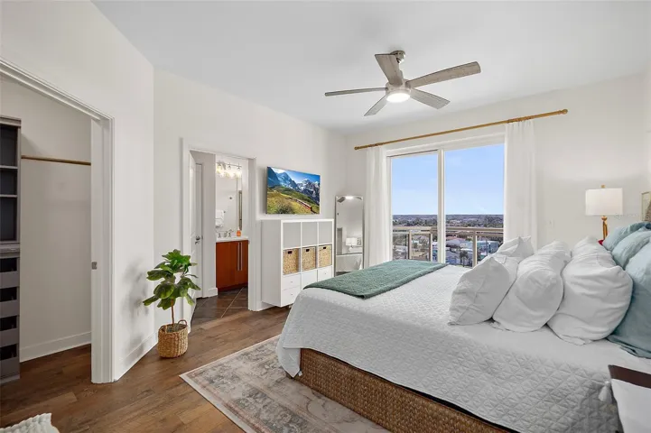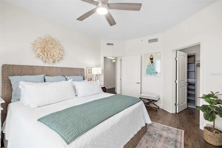 THE PRIMARY BEDROOM IS AN IDEAL RETREAT WITH CAPTIVATING OCEAN VIEWS AT EVERY TURN AND AN UPSCALE APPEAL WITH HIGH CEILINGS, CROWN MOULDING, DOUBLE DOOR ENTRY, AND OCEAN VIEWS ON FULL DISPLAY. RUSTIC INSPIRED FLOORING SET AGAINST THE MONOCHROMATIC FURNISHINGS MAKE THIS A LUSH OASIS. THE PRIMARY BATH FEATURES A LARGE SUMPTUOUS SOAKING TUB, DOUBLE VANITY, DUAL SHOWER HEAD, AND SPA-INSPIRED FINISHES. TWO ADDITIONAL BEDROOMS WITH ENSUITE ON THE WEST WING WITH BALCONY PROVIDE INTRACOASTAL VIEWS, *MAKING THIS FRONT TO BACK FLOOR PLAN THE MOST DESIRABLE IN THE BUILDING!*