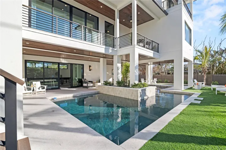 Investor’s Dream – Short term rentals allowed here at this amazing Siesta Key home. Designed specifically to cater to large groups, this brand new home comes fully furnished and ready to produce an impressive income. Just steps away from Siesta Key’s public beach access onto Crescent Beach, all the boxes are checked here. 8 bedrooms, all en suite with 8 bathrooms and a powder room too. Amazing resort style pool & spa boasting a rain/waterfall feature and impressive outdoor living. Luxury finishes are seen throughout such as an elevator, high end appliances, solid wood cabinetry, stone surfaces, bar, oversized island, and more!