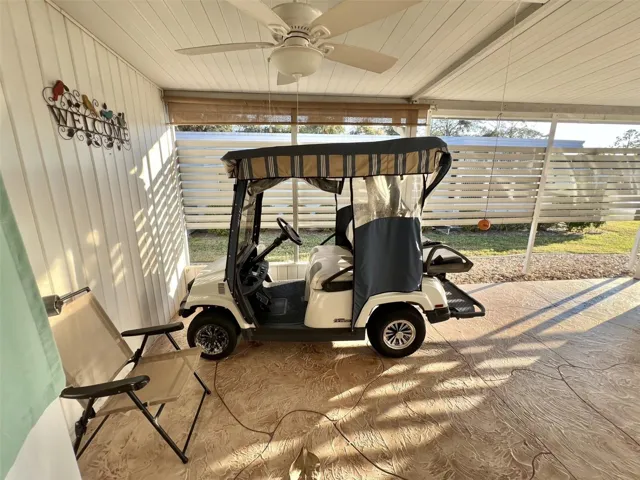 Welcome to your dream home in the highly sought-after Bougainvillea Drive! This charming 2-bedroom, 2-bathroom home is thoughtfully designed for both comfort and convenience. Key features include textured driveway with a golf cart included, perfect for easy exploration of Hawthorne community; spacious utility room offering ample storage; new exterior siding for added curb appeal and durability; stylish vinyl plank flooring throughout; updated windows to invite abundant natural light; luxurious walk-in closet in the master bedroom and raised toilets for enhanced accessibility……………Hawthorne at Leesburg is an active, resident owned 55+ cooperative, waterfront, gated community, with beautifully landscaped grounds, lakes with illuminated fountains and a relaxing and comfortable gazebo. The affordable monthly maintenance fee of $397 includes water, sewer, lawn mowing, private emergency services and storage space for recreational vehicles, boats, trailers and much more! The beautiful clubhouse is complete with a full-time program coordinator, more than 100 different activities and seating for 550. It has a hospitality lounge, card rooms, craft rooms, billiard room, fitness center, library, fine arts room and many more. There is excellent fishing, outdoor geo-thermally heated pool and two enclosed therapeutic pools. Hawthorne boasts a private marina monitored by an electronic security system with over 120 boat slips and access to the Harris Chain of Lakes and beyond.