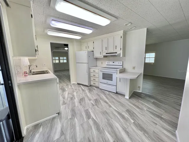 For added efficiency and safety, a brand-new main electrical panel has been installed outside by the electric meter, ensuring compliance with the latest electrical codes. Inside, stylish and durable new vinyl flooring flows seamlessly throughout the main floor and bedrooms, adding warmth and elegance to every space. Both bedrooms are equipped with generous walk-in closets, providing ample storage space. The large laundry room includes built-in cabinets, perfect for organizing and storing all your essentials. Additionally, the home’s ceiling has been replaced, ensuring added durability and peace of mind. With 1,800 square feet of heated and cooled living space, this home perfectly balances modern updates with structural integrity—ready for you to move in and enjoy. ………. Hawthorne at Leesburg is an active, resident owned 55+ cooperative, waterfront, gated community, with beautifully landscaped grounds, lakes with illuminated fountains and a relaxing and comfortable gazebo. The affordable monthly maintenance fee of $397 includes water, sewer, lawn mowing, private emergency services and storage space for recreational vehicles, boats, trailers and much more! The beautiful clubhouse is complete with a full-time program coordinator, more than 100 different activities and seating for 550. It has a hospitality lounge, card rooms, craft rooms, billiard room, fitness center, library, fine arts room and many more. There is excellent fishing, outdoor geo-thermally heated pool and two enclosed therapeutic pools. Hawthorne boasts a private marina monitored by an electronic security system with over 120 boat slips and access to the Harris Chain of Lakes and beyond.