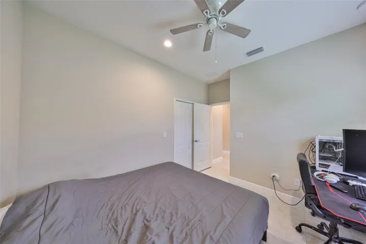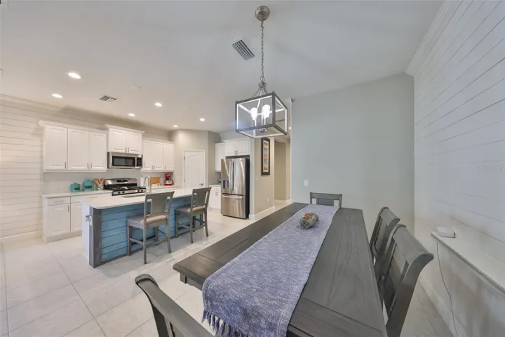 MOVE IN READY dream home built on a waterfront premium lot with 1766 square feet of living area that offers 3 bedrooms + den, 2 baths, 2-car garage. This home boasts multiple custom feature walls, custom wood accents, and a beautiful kitchen with white cabinets, quartz countertops, backsplash, gas stovetop, stainless appliances, pendant lighted dining area & recessed lighting, and a center island. The main living area has a huge tray ceiling and contemporary ceramic tile flooring throughout. The master bedroom suite is spacious with a large walk-in closet. In addition, the master ensuite bathroom is light and bright, with double sinks & walk-in shower. The great room has sliders which open to a custom extended screened lanai. Landscaping irrigation is included with the community. Water Softener for entire home. The view is spectacular, overlooking a large lake. Let’s not forget the walk.-in laundry room with washer/dryer and utility sink. Silverleaf is a fairly new & exciting Gated Neal Community, which includes a recreation area with a fitness center, pool and spa, a playground and pavilion with grills, a basketball court, two dog parks, walking trails, and a boardwalk. Well located, the community is situated near lots of retail shopping, dining and entertainment destinations, and convenient to I-75.