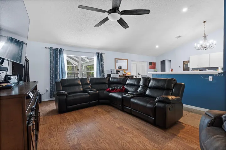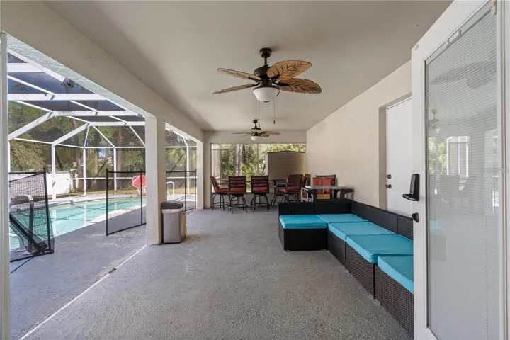 Step outside to your private tropical retreat, featuring a screened-in, solar-heated inground swimming pool—perfect for relaxing or entertaining. The fully fenced yard backs up to reserved areas on two sides, offering extra privacy. A circular driveway adds convenience and additional parking.