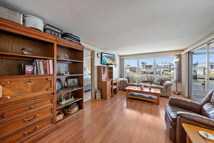 Welcome to this LAID-BACK COASTAL GEM in TROPIC ISLES, a vibrant 55+ RESIDENT-OWNED waterfront haven – Where Every Sunset Whispers Home. This property awaits for you! A sanctuary kissed by water views and cradled by comfort. This enchanting 2-bedroom, 2-bath treasure invites you to wake with the sun and unwind as the water dances beneath the twilight.