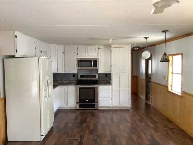 NO LOT RENT!!! County water and sewer. No Mandatory HOA fees. Must see to appreciate! Superb condition and ready for new owner. Don’t let the age fool you, this owner has done all the work for you and it shows! This move in ready mobile has new 3/4″ tongue and groove exterior plywood subfloors throughout entire home along with new laminate flooring and commercial grade vinyl flooring in baths and laundry areas. New bathroom fixtures and vanities, a new 50 gallon hot water heater along with a new central heat and air system that was installed April 2025. All new pvc water lines installed throughout. The kitchen has been updated with new custom cabinets, new above stove microwave and countertops. You will also notice home has been freshly painted inside and out along with freshly painted drive and carport area. Interior of the home has new trim and Wainscoting along with solid wood window casings and sills. Enjoy your morning coffee or relax in the evenings on your 12×24 screened porch with new indoor outdoor carpeting. There is also a great storage/workshop area. If you are looking for the perfect retirement or winter retreat, look no further! Located in a quiet community and awaiting your arrival and your personal touch.
