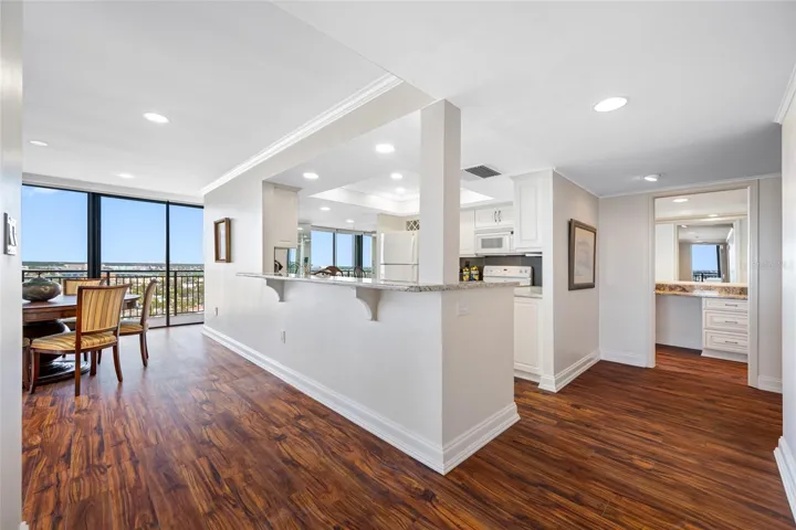 As you enter this exquisite unit, you are greeted by an expansive open floor plan that seamlessly blends elegant design with modern living. Floor-to-ceiling windows bathe the space in natural light and frame the panoramic vistas, enhancing the beauty of the coastal surroundings. The gourmet kitchen is a culinary enthusiast’s dream, featuring top of the line appliances, custom cabinetry, and a spacious island with exquisite granite countertops, perfect for entertaining guests or enjoying casual meals.