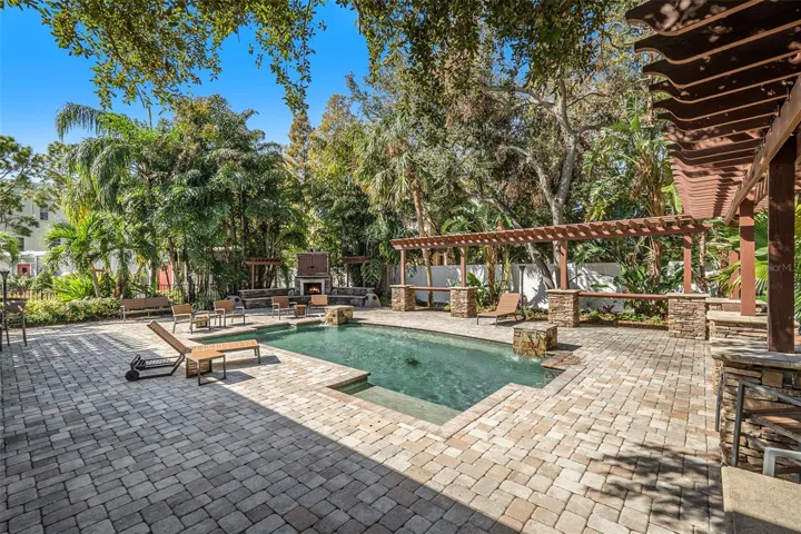 WELCOME TO 5701 S MACDILL AVENUE! Embrace resort-style living in this FULLY FURNISHED 4-BEDROOM, 2.5-BATHROOM retreat in South Tampa’s desirable BALLAST POINT neighborhood, perfect for CORPORATE RELOCATION, EXTENDED STAYS, or a RELOCATION BASE while you explore the city. Spanning just under 3,000 SQ FT of HEATED LIVING SPACE, the home is TURN-KEY with furniture, décor, linens, cookware, and electronics included for an effortless arrival. The FOYER greets you with a DROP-AND-GO STATION for everyday essentials, while the FAMILY ROOM features an OFFICE NOOK that blends work and relaxation. Step outside to your PRIVATE OUTDOOR OASIS: a CUSTOM OPEN-AIR POOL framed by TROPICAL LANDSCAPING, multiple SUN LOUNGERS, a COVERED PERGOLA with an OUTDOOR KITCHEN and GRILL, and a STONE FIREPLACE for cozy evenings. Built-in ENTERTAINMENT SYSTEMS and PERGOLA HIGH-TOP RAILS make hosting a breeze, and COOLING FANS keep the patio comfortable year-round. Inside, the GOURMET KITCHEN features a FLAT-TOP RANGE, WINE COOLER, KEGERATOR, and BISTRO-STYLE ISLAND, ideal for home chefs and entertainers. The converted GARAGE doubles as a GAME/MEDIA ROOM with OFFICE SPACE and room for a HOME GYM. Upstairs you will find a FULL LAUNDRY ROOM, three ADDITIONAL BEDROOMS, and a SECOND FULL BATH. The LUXURIOUS PRIMARY SUITE offers TRAY CEILINGS, a SPA-LIKE ENSUITE with GARDEN TUB, WALK-IN SHOWER, DEDICATED WATER CLOSET, and an EXPANSIVE WALK-IN CLOSET. Enjoy NO HOA or CDD restrictions and a location in FLOOD ZONE X. Minutes to MACDILL AFB, DOWNTOWN TAMPA, BAYSHORE BOULEVARD, and BALLAST POINT PARK, this home provides both tranquility and convenience. AVAILABLE FOR LONG-TERM or FOR SHORT-TERM LEASEv(minimum 30 days, different terms apply) . Contact us today to secure this EXCEPTIONAL FURNISHED RENTAL in South Tampa’s vibrant Ballast Point neighborhood!