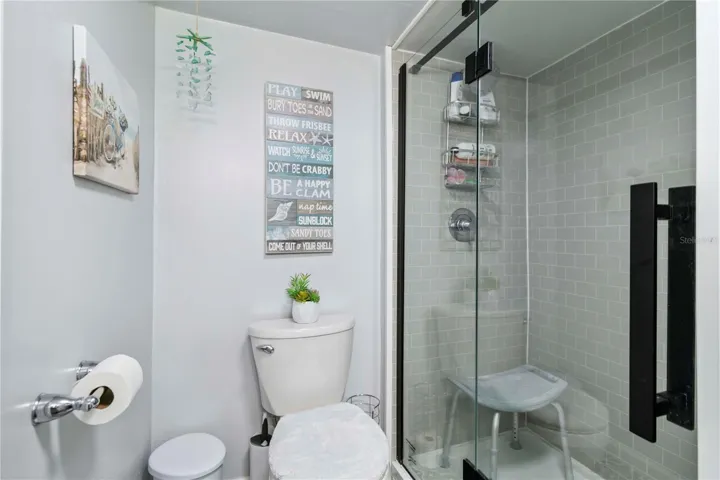 – Updated bath with tiled walk-in shower; stackable washer/dryer included