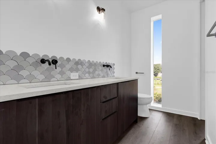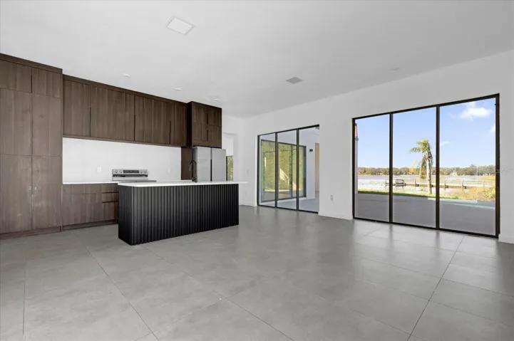 Step into this extraordinary two-story residence, where German modern architecture meets contemporary elegance. The striking façade instantly captivates with its harmonious blend of glass and wood, creating a warm and inviting entry. As you enter, you’re greeted by an expansive open floor plan that seamlessly merges indoor and outdoor living. Architectural sophistication flows throughout the home, highlighted by an abundance of glass and rich wooden accents. A spectacular floating staircase elegantly divides the foyer from the main entertainment spaces, adding a touch of artistry to the entrance. The heart of the home is a luxurious, sunlit kitchen, featuring a stylish island and an abundance of storage with sleek European-style cabinets and a spacious pantry. It overlooks the dining area, offering breathtaking views of the serene lake, perfect for hosting gatherings or quiet family dinners. On the first floor, a comfortable bedroom with a full bathroom provides convenience for guests or family. Also, you’ll find a delightful living room awash in natural light, accentuated by three sets of sliding glass doors that open to a private outdoor oasis—ideal for leisurely afternoons or entertaining under the stars. Ascending the staircase, Retreat to the owner’s suite situated at the back of the home, where sweeping water views greet you from your private balcony. The expansive owner’s bathroom is a spa-like escape, boasting dual vanities, a glass-enclosed shower, and a generous walk-in closet. Nestled on a prime corner lot between a picturesque channel and the stunning lake, this home offers the ultimate resort-style outdoor living experience. Additional highlights include a spacious covered porch and a two-car garage, rounding out this remarkable property designed for both comfort and luxury. Experience the perfect blend of modern design and tranquil living—your dream home awaits!