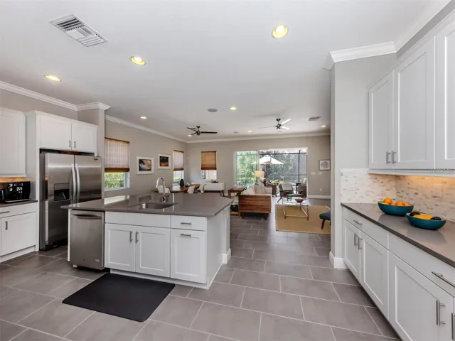 SELLER OFFERING BUYER UP TO A $7,500 CREDIT TOWARDS CLOSING COSTS with an acceptable offer! Discover this immaculate, move-in ready home in the Venetian Golf & River Club located at the cul-de-sac of Padova Way. This home features preserve views and a desirable southeast exposure, affording unparalleled peacefulness, privacy and light. This Islamorada model was one of the last Grand Villas built by WCI and features an open kitchen with exceptional in-cabinet storage as well as a convenient walk-in pantry with upgraded oak shelving. Three spacious bedrooms and three full baths, as well as a flexible den afford comfort and privacy for owners and guests alike. The large welcoming foyer leading to the spacious great room with sliding glass doors out to the lanai and pool afford easy living and gracious entertaining. The home features crown molding and tile flooring in the main living areas, hardwood flooring in the bedrooms and den and in-ceiling lighting throughout. In addition, the kitchen features upgraded wood cabinets, quartz counters, a marble tile backsplash, and stainless-steel appliances including a gas range. The owners’ suite includes a spacious bath with dual sinks and a large glass shower, as well as a huge walk-in closet affording maximum convenience and storage. All three-bedroom closets feature attractive upgraded oak shelving. The screened lanai is perfect for both dining and lounging. The pool features a sundeck for relaxing as well as a solar heater for extended pool use without the utility bill. With its perfect blend of peaceful spaces and inviting living areas, this home provides a sanctuary within the exceptional Venetian Golf & River Club. Enjoy resort-style amenities including exquisite dining at the River Club with scenic views of the 70-acre nature park along the Myakka River, a full fitness center, aerobics studio, lap pool, resort-style pool with a cabana bar, six Har-Tru tennis courts, pickle ball courts and an 18-hole championship golf course that winds throughout the community. Located in beautiful North Venice, the home is just 10 minutes from Gulf beaches and shopping, only minutes to state-of-the-art medical facilities and the newer Sarasota Memorial Hospital and has easy access to I-75 and airports. This home is a true gem. Don’t miss out on this rare opportunity to own this popular spacious model home!