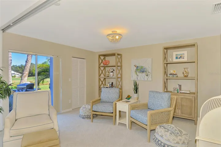 Charming patio home available and move-in ready for season! Pack your bags and head to Florida to this amazing two bedroom two bath nicely updated home. Fresh warm neutral colors inside welcome the new owners. Nothing left for the new owner to do to this one! NO WALL PAPER OR POPCORN CEILING!! New kitchen appliances, new ceiling fans, NEW ROOF (2024), NEW EXTERIOR PAINT (2025), NEW ELECTRIC PANEL (2024). Both closets were newly redone, as well!! This special home has a new divider which allows the main living area to be partitioned off if needed for privacy providing another room if needed for guests or privacy. Even the washer and dry and grill have been purchased and gently used by current owners in recent years. The amazing views from lanai will give you years of exciting golf watching on the second hole of the Bobcat course and if you get tired of watching golf head to the Atlanta Braves Stadium only minutes away for a game or one of the many sponsored social events; with all this who needs ESPN (LOL). This well maintained and loved home is what you will find in this “Home away from Home”. This one truly offers everything you are looking for in the Florida Lifestyle; enjoy the sun and views on the lanai, join the golf club and play a round of golf, go to the community pool and relax with neighbors! Make your choice because the current owners have already done the work in making this one updated and low maintenance for you! 461 Wexford Cir is special and worth the look. Put it on your MUST SEE list before it is gone. NEW Furnishings are beautiful and available!