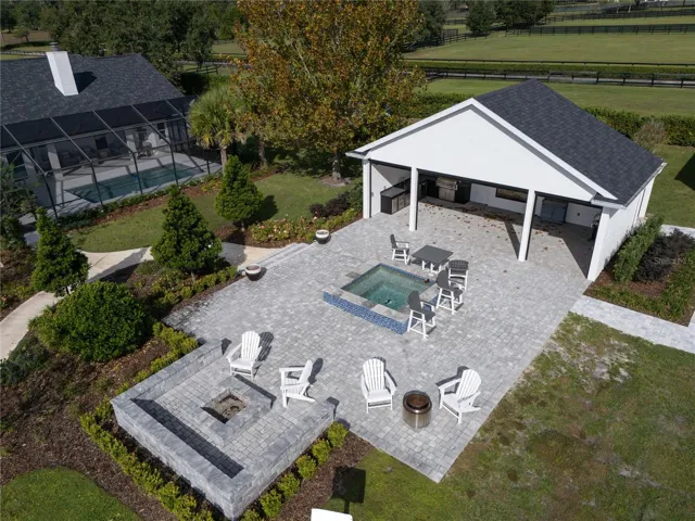 Just minutes from world-class equestrian venues, this 10-acre fully fenced estate offers versatility, charm, and exceptional convenience. Located 10 minutes to the World Equestrian Center and only 5 minutes to Golden Ocala, the property combines an ideal location with thoughtful design and extensive amenities for both homeowners and equestrians. A tree-lined driveway welcomes you onto the property and sets a beautiful tone as you approach the heart of the estate. Toward the back of the acreage sits a spacious 6-stall barn featuring rolling doors, washracks, a tack room, laundry room, bathroom and a comfortable apartment/office area. A separate barn kitchen is centrally located within the barn,ideal for convenience during long days on the property. There is also ample parking space for equipment. Just beyond the barn, riders will appreciate the clay-footing riding arena and surrounding paddocks. The main home offers an inviting layout with 4 bedrooms, 2 full baths, and 1 half bath, and an office. High ceilings and a centrally placed fireplace bring character and warmth to the living space, while select bedrooms feature soft carpeting for added comfort. The kitchen is complete with updated appliances, a butcher block island, and a charming breakfast nook that frames views of the pool. The back porch flows seamlessly to the screened-in saltwater pool, creating an elegant outdoor living space. Outside the pool enclosure, a paved walkway leads to a tranquil outdoor retreat that includes a spa, firepit, seating area, and a covered outdoor kitchen for gatherings and enjoying Florida’s beautiful weather. A small pool house provides convenient storage for outdoor and pool essentials. For added versatility, the property also includes a studio apartment within the garage, complete with a full kitchen,full bathroom, and laundry area, an excellent option for guests, staff, or rental income. Move-in ready and thoughtfully outfitted for equestrian living, this property blends comfort, convenience, and rural elegance in one of Ocala’s most desirable locations.