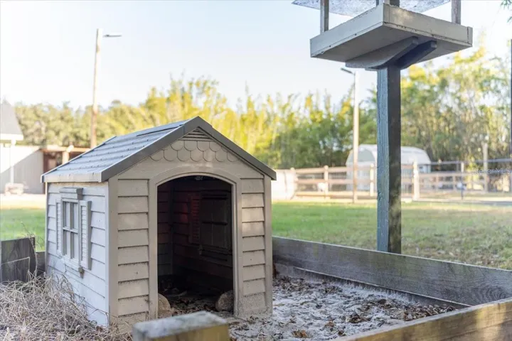 Outdoors, enjoy Florida living at its finest. The expansive yard offers unmatched privacy, offering custom touches throughout. You will find a screened in porch area, additional uncovered paved sitting area with paved fireplace, covered grill station, custom built Covered bar area with Live edge countertop-heaters-sound system & speakers, fire pit, above ground pool, barn, RV hookup and a detached garage that’s perfect for extra storage or hobby space.