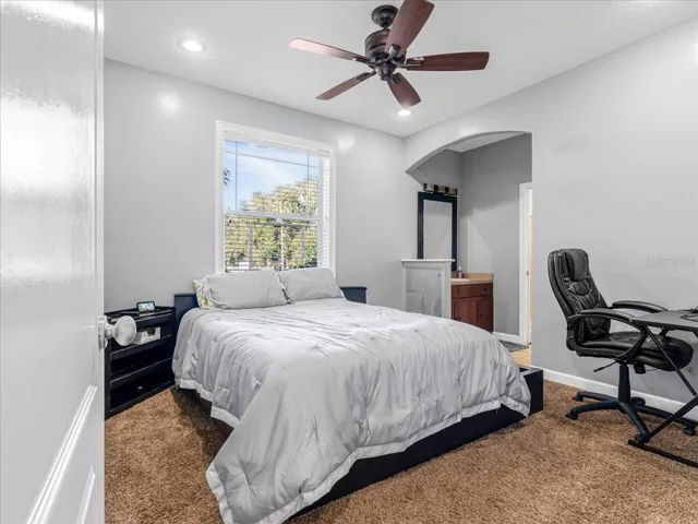 The primary suite is a true sanctuary, complete with dual closets, a large bathroom with a jacuzzi garden tub, and a private outdoor shower for a relaxing, spa-like escape.