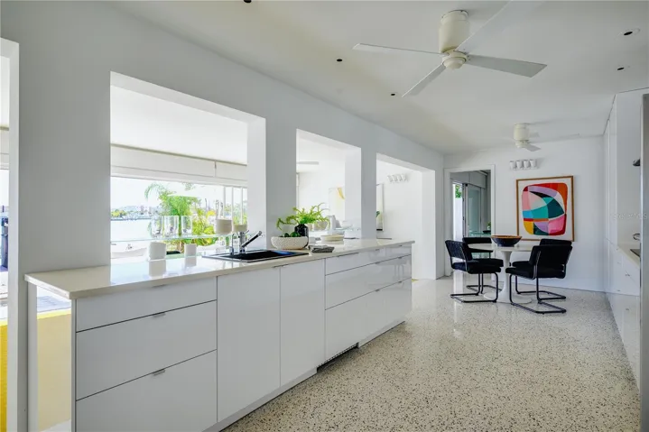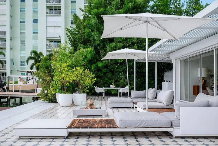 $50K PRICE REDUCTION!!! Welcome to this Exquisite 4 bed 2.5 bath Waterfront Pool Home located in the heart of St Pete Beach. This Residence exudes the seamless integration of Mid-Century Modern and Contemporary Coastal Chic vibes. This uniquely designed home harmonizes with its lush surroundings and captivating water views, and has been thoughtfully curated to embody a chic, vibrant, and welcoming atmosphere. Thoughtfully designed by a distinguished New York design and lighting consultant (clients include Ritz Paris, Cipriani & Ralph Lauren), every detail of this home screams style and sophistication. The lushly landscaped circular driveway invites you into the first of two private outdoor courtyards. As you step through the modern double doors, the open-concept layout unfolds, blending living, dining, and entertaining spaces with the vast expanse that is your pool, patio and captivating water views. The 40-foot expanse of glass pocket slider doors seamlessly blurs the boundaries between indoors and outdoors, in classic Mid-century style. For Enhanced security and privacy, the roll-down hurricane shutters on exterior doors and sliders provides convenience as needed. With a southern exposure ensuring abundant natural light and dynamic sky views throughout the day, this home is characterized by clean lines, original polished terrazzo, Missoni® Bolon® flooring, Balinese Tile in the primary, and contemporary lighting fixtures. Each element has been meticulously designed for the property’s distinctive aesthetic. Luxurious bathrooms, including a guest outdoor shower and a private patio with an outdoor tub and shower off the primary bedroom, showcase modern updates. The exquisitely updated kitchen features modern cabinetry, double wall oven/microwave, glass cooktop in the new stainless steel appliance package. This Mid-Century Modern Contemporary work of art is one a kind. From the custom Moroccan Pavers, outdoor dining and kitchen, and lounge style seating around the wood burning fire pit (VITEO), to the solar heated pool(2022) and private deck, the afternoon breezes will be tastefully accented by the dolphins swimming by. This property portrays the boating paradise most only dream of; 10,000lb lift with composite deck, 77ft seawall (2014), and floating dock for water toys! HURRICANE PROTECTION: this home has 5′ aluminum flood panels installed for all the doors and windows. Panels can be stored off-site and installed as needed (for a fee) or the homeowner can store and install themselves. Flood insurance discounts may apply (see attachments)