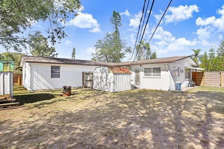 Tucked away on a quiet street just minutes from some of the worlds most desirable beaches, this well located duplex presents a rare opportunity for both investors and owner occupants in todays challenging market. The home features solid block construction, with a thoughtfully designed permitted addition completed in 1996, and is located in a no flood zone where flood insurance is not required. Designed for flexibility, each side offers a distinct layout to accommodate rental income, multigenerational living, or a live in lease out strategy. The A side features a one bedroom one bath configuration with a full kitchen and comfortable family room, ideal for long term or seasonal rental. The B side offers two bedrooms and two baths (master suite located at the rear of the home), a spacious family room, eat in kitchen, dining area, a large flex room, and an oversized closet pantry that is large enough to be used as a nursery or home office, providing strong appeal for tenants or extended family living. Outdoor living is a standout feature with a large backyard that is fully fenced with a privacy fence, oversized private carports perfect for grilling, and two sheds for additional storage. The lot is beautifully landscaped with mature trees, flowering plants, and shrubs that enhance privacy and curb appeal. A well water spigot supports irrigation while the home itself is connected to city water and city sewer. Located just two miles from IMG Academy and six miles from Coquina Beach, this property benefits from consistent demand and strong location appeal. Many newer items add value and peace of mind including bathroom vanities, washer, dryer, well pump, and water heaters. With no HOA restrictions and a location that is hard to beat, this property delivers a smart two for one solution offering income potential, lifestyle flexibility, and long term value in a market where smart buys matter more than ever. Visit Homes for a full 3D walk-through.