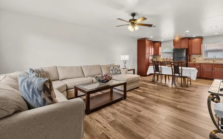 One or more photo(s) has been virtually staged. NEW $5,000 PRICE IMPROVEMENT! SELLER MOTIVATED! Welcome to Breezeway Villas, a centrally located, beautifully landscaped community in Pinellas Park- NOT a 55+ community- offering low maintenance living and convenient access to Clearwater, St. Petersburg, and beyond. Enjoy truly effortless ownership with HOA dues that cover water, sewer, trash, high-speed internet, cable, and full grounds and pool maintenance—leaving electric as your only utility expense. New Owner also has the benefit of assuming an EXTREMELY LOW tax bill ($184.23/year). This desirable top-floor, end-unit residence offers exceptional privacy with no upstairs neighbors and only one shared wall. The elevated second-floor setting ENHANCES SECURITY, captures refreshing breezes, and provides a QUIETER overall experience. The open-concept condo features nearly 900 sq ft of living space, 2 bedrooms, 2 bathrooms, and comes with an assigned parking space plus ample guest parking. Check out these valuable upgrades! Inside, the unit has been tastefully remodeled in 2022 and 2024 (over $50k in upgrades), showcasing new high-end carpet and waterproof luxury vinyl flooring (2024). The kitchen has been fully upgraded with soft-close cabinetry, pull-out drawers, lazy Susan corner storage, granite countertops, a 3D tile backsplash, and a water filtration system. Both bathrooms have been beautifully updated with modern vanities, faucets, toilets, LED lighting, and stylish fixtures. Other thoughtful upgrades include: new ceiling fans, baseboards, closet doors, trim, blinds, replaced outlets, light switches, and vents as well as a smart thermostat operable via app for efficient climate control. There is an in-unit Maytag washer and GE dryer equipped with CleanStart Laundry Technology—a detergent-free, eco-conscious way to clean clothes that conveys with the sale. The home’s HVAC was replaced in 2022, and the roof is recently redone, offering peace of mind for the new owner. Enjoy the tranquil community pool, lush green landscaping, and convenient location minutes from Hwy 19, retail centers, restaurants, grocery stores, top rated beaches and more! The home is located in a non flood insurance required area. This move-in ready condo is perfect for those seeking a turnkey home with modern comforts and minimal upkeep.