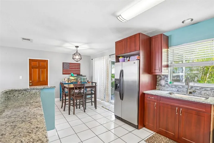 Welcome to 5775 57th Ave N—a move-in ready 2-bedroom, 1-bath solid block construction home offering space, character, and a prime St. Petersburg location in a non-flood zone with no flood insurance required; this well-maintained property features durable tile flooring throughout, a spacious primary bedroom, and a beautifully updated kitchen with solid wood cabinetry, stainless steel appliances, and granite countertops; an expansive enclosed Florida room and additional rear living area bring the total living space to over 1,500 sq ft, providing flexible options for a home office, second living room, or play area; step outside to a large fully fenced backyard with irrigation, perfect for entertaining or pets, along with a substantial storage shed built with Hardie board siding; the home also includes a metal roof for long-term durability, a one-car garage, a generous laundry/utility area, and charming curb appeal highlighted by a mature oak tree with a classic rope swing; ideally located just minutes from downtown St. Petersburg, Gulf beaches, shopping, and dining, this property is a fantastic opportunity for homeowners or investors alike—schedule your private showing today.