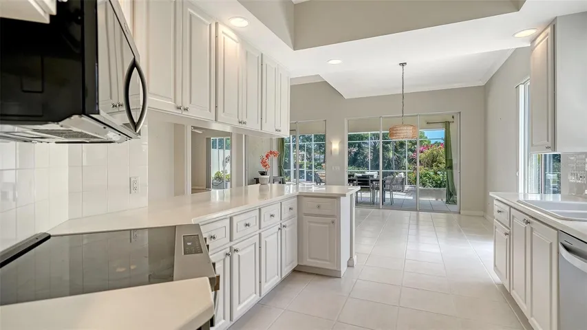 A NEW TILE ROOF – JUST INSTALLED! – Beautiful Large Tiled Lanai with waterview and two elevated plant boxes and fountain, with eastern sunrises. This home has been thoroughly cleaned with updates including Whirlpool Stainless Steel appliances, crown molding throughout, Plantation shutters and built in bookcases in den, plantation shutters in 2nd & 3rd bedrooms, bright white tile throughout living area, pull out shelving in kitchen, raised Commodes, Samsung Washer & Dryer, Hot Water Heater (2018), cabinets in garage, central vacuum, super clean and move in ready. Accordion Shutters for the best hurricane protection. Village Walk is a wonderful unique community, built hurricane safe with poured concrete walls and foundations. Every home in Village Walk is considered to be a Single Family Home, roofs are tied down to the structures, per the Florida Building Codes and considered to be above average. Inspectors, roofers and Insurance agents that are familiar with Village Walk will share this information with you. Village Walk is in Flood Zone X, an area that is determined to have a very low chance of flooding. FEMA updated, 8/2/24. Flood Zone provided by Sarasota County Tax reports. Evacuation zone X, flood insurance is not mandatory, but flood insurance is available. Village Walk power lines are underground with a Sarasota Fire Department just down Honore, rarely losing power. Amenities include 24 hr guarded gate, geo-thermal heated and cooled lap & lagoon pools, six Har-Tru Tennis courts, Pickle ball, Bocce’ Ball and Basketball courts, State of the Art fitness Center, Miles of walking and bike paths, over 500 acres of lakes and preserves. There are over 50 activity groups who meet daily, weekly, or monthly. Plus there is a full service Cafe with full service Bar, Tiki Hut with bar service at the pool, Gas Station, Barber shop/Hair Salon, and Gift Shop. A special NOTE is that Village Walk did not lose power during the hurricanes and there was No flooding. What a Great Place to call home!