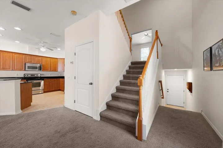 Location, Location, Location! Tucked away on a tree-lined cul-de-sac, this private corner-unit townhome offers over 2,000 sq ft, 3 bedrooms, 2.5 baths, and a 2-car garage. The main living level features soaring ceilings, ceramic tile flooring, and an open-concept layout perfect for everyday living and entertaining. The spacious kitchen includes wood cabinets, granite countertops, a breakfast bar, and a closet pantry, flowing seamlessly into the dining and living areas. A covered porch overlooks the peaceful backyard. On the next level the primary suite offers a large walk-in closet, sink vanity, walk-in shower, and linen closet. Upstairs features two additional bedrooms and a shared full bath. Enjoy outdoor living from the screened lanai overlooking your backyard. Pet-friendly community with leasing allowed. Conveniently located just a short drive to Clearwater Beach, shopping, dining, and both St. Pete/Clearwater and Tampa International airports.