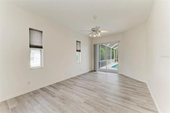 This move-in ready 4-bedroom, 3-bath home is ideally located on a quiet cul-de-sac in the desirable Creekwood subdivision. Freshly painted and featuring no carpet throughout, the home offers granite countertops, a walk-in pantry, and a spacious kitchen that opens to both dining and living areas, along with a separate family room for added flexibility. The primary suite includes two walk-in closets and direct access to the screened-in private pool, perfect for relaxing or entertaining. A two-car garage adds convenience and storage. Enjoy community amenities including a pool, playgrounds, walking trails, and tennis courts, all just one mile from SR 70 and two miles from I-75.