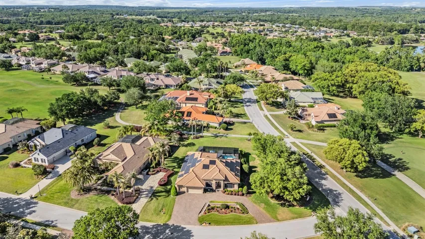 HIDDEN GEM in the HILLS of East Pasco, where you can Experience refined luxury living in this exceptional, custom-designed “Bonaire” residence by Arthur Rutenberg, ideally positioned on a beautifully landscaped, elevated corner homesite within the prestigious Lake Jovita Golf & Country Club. Perfectly situated just moments from the clubhouse, this exquisite 3042 sf home captures sweeping views of the putting green and driving range from its expansive lanai, creating a serene and picturesque backdrop for everyday living and casual elegant entertaining. Meticulously maintained by its original owners, this residence showcases superior craftsmanship and an impressive array of high-end upgrades. The thoughtfully designed split floorplan offers both comfort and privacy on each wing, featuring a sophisticated den/study, as well as a versatile office, utility and hobby room complete with extensive custom cabinets, desk-height workspace, and a built-in stowaway worktable. The primary suite is a true owners retreat, highlighted by an extraordinary oversized DIVINE dressing room with custom shelving, organization systems, automatic lighting and a large window for natural light! Gourmet kitchen is the HUB of the home with a rounded island overlooking the family room with sliders to the outdoor living space. The expansive screened lanai boasts an oversized covered area with dual circulating fans, a custom saltwater pool with water feature & Lanai and pool lighting systems, therapeutic spa, outdoor shower and a fully equipped outdoor kitchen featuring a grill, pot burner, wine chiller, and sink—perfect for hosting on any scale. Enhancing the experience, American Flag & flagpole, all lanai furnishings & four mounted TVs are included, creating a turnkey outdoor OASIS! This home is as efficient as it is elegant, featuring a new Tile Roof (2023), solar panel system (2023) offering remarkably low average electric bills with potential annual rebates, pool heater (2020), whole-house generator, buried propane tank, irrigation well and underground drainage systems. Hurricane shutters and screens provide peace of mind, while modern conveniences such as Cat-5 wiring, centralized electronics hubs, surround sound, LED lighting and solar sky tubes ensure a connected and light-filled environment. Additional luxury touches include circular paver driveway, updated bathrooms with quartz finishes and spa-like features, designer window treatments, luxury vinyl woodgrain look floors & stunning landscape with architectural lighting that elevate the homes ambiance both day & night. Stunning curb appeal with terraced floral landscaped beds welcomes family & friends. Set within one of the area’s most sought-after Security guard-gated communities, residents enjoy access to scenic walking paths, park with playground, picnic area, 2 dog parks, pickleball, tennis & basketball, and walking trail with fitness stations. OPTIONAL MEMBERSHIPS at the CLUB available to add Fitness center, 2 championship golf courses, Har-tru clay tennis courts, Jr Olympic swimming pool with lap lanes, social events for members, pro shop and full service restaurant—all while being conveniently located near shopping, dining, medical facilities, and major highways with easy access to Wesley Chapel, Tampa, St Petersburg and Orlando. This is a rare opportunity to own a truly distinguished property that blends luxury, efficiency, and lifestyle in one remarkable residence… what a GREAT PLACE to call HOME!