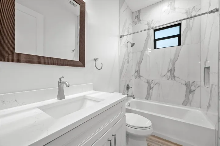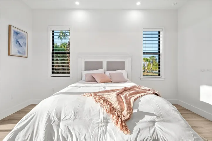 The owner’s suite is a sanctuary of relaxation, offering a spa-inspired bathroom with a freestanding soaking tub, dual vanities, and a luxurious walk-in shower with rainfall and dual showerheads.
