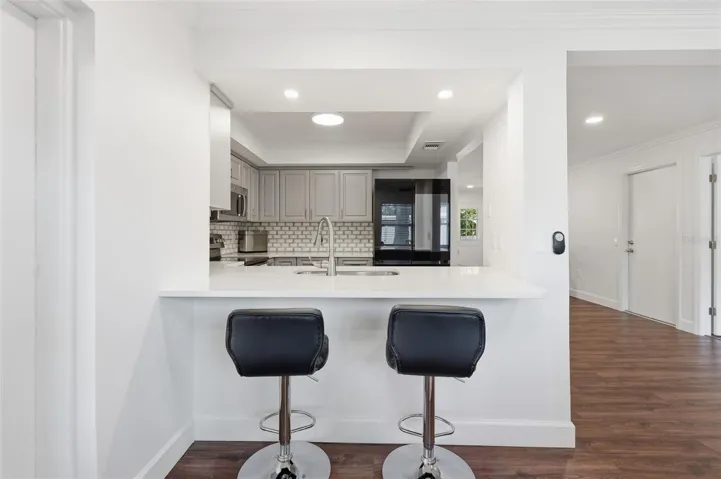 Welcome to this beautifully updated three-bedroom, two-bathroom home in the heart of Palm Harbor, offering the perfect blend of comfort and location. Situated on a jumbo-sized lot in a highly desirable area, you’ll love the convenience of being just minutes from local baseball fields, the Palm Harbor Library, and the growing selection of dining and shopping options along US-19 – including the new Trader Joe’s less than a mile away. The home has been thoughtfully updated throughout, starting with fresh exterior paint and continuing inside with a light and bright interior featuring new paint, an open floor plan, crown molding, and updated ceiling fans. Durable wood-look vinyl flooring runs seamlessly throughout the home, enhancing the functionality. The kitchen is designed for both everyday living and entertaining, showcasing quartz countertops, stainless steel appliances, ample cabinetry, and a breakfast bar that opens to the dining area. The split floor plan provides privacy, with a spacious primary suite offering a walk-in closet with built-in organizers and a beautifully renovated en-suite bathroom complete with a glass-enclosed shower, rain showerhead, stone-top vanity, and updated lighting. The additional bedrooms are nicely sized, each with ceiling fans, and share a full bathroom with a tub/shower combination. Step outside to a screened-in porch – perfect for enjoying Florida’s weather year-round – overlooking a large fenced backyard with plenty of space to grill, garden, or even add a pool. Additional highlights include a 2025 water heater, no HOA, and zoning for excellent schools. This move-in-ready home combines modern updates with an unbeatable Palm Harbor location – don’t miss your opportunity to make it yours. Schedule your showing today!