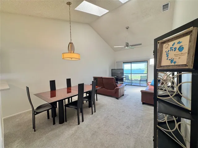 Gorgeous sunset views over Lake Winterset… this is the kind of rental you don’t come across often. Located in the gated Winterset community, this well-maintained 2-bedroom, 2-bath upstairs condo with a private one-car garage offers easy, low-maintenance lakeview living. Inside, you’ll find an open and airy layout with vaulted ceilings, skylights, and large sliding glass doors that bring in tons of natural light while framing peaceful lake views. The spacious great room serves as the main living area, while the kitchen is tucked just off to the side featuring an eat-in area, breakfast bar, closet pantry, and a convenient laundry closet with washer/dryer. The primary suite overlooks the lake and offers private access to the screened-in lanai, along with a large walk-in closet and an updated en-suite bath with a walk-in shower. The split bedroom layout provides privacy, with the guest bedroom offering ample space and easy access to a full second bath with a tub/shower combination. Guest parking is available nearby. Winterset residents enjoy access to a lakeside community pool, clubhouse, tennis courts, and a private boat ramp with direct access to the Chain of Lakes—ideal for boating, fishing, and enjoying lake life. Conveniently located near Publix, Walmart, Legoland, dining, shopping, medical facilities, and easy access to Highway 27. Move-in ready—schedule your showing today.