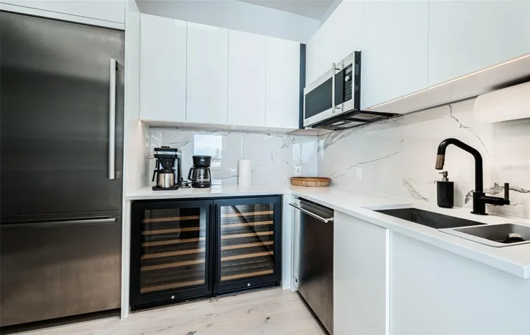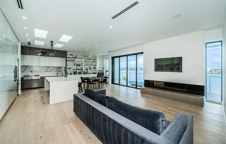 One or more photo(s) has been virtually staged. LUXURIOUS AND CONTEMPORARY, WITH THE PERFECT L.A. BLEND OF MINIMALISTIC ELEGANCE, SUPERIOR FORM AND ADVANCED FUNCTION, THIS VISUALLY-STUNNING WATERFRONT RESIDENCE WAS BUILT WITH REFINED IMAGINATION AND YEARS OF FORWARD-THINKING! Remarkable planning and extraordinary attention to the smallest of details have yielded a home that breathes a beautifully rare and clean simplicity. High ceilings, tall windows, elegant engineered hardwood flooring and finishes designed to “float” throughout the home, deliver a deeply-satisfying, Andy Worhol-like living experience. Modern concept kitchen features inconspicuous white cabinetry, high-quality stainless steel appliances, gas cooking, quartz counters, large island bar and a wonderful multi-function pantry hidden away from the home’s open areas. Superb built-ins offer a distinct art deco flare that complement posh, state-of-the-art lighting and generous use of skylights. The inspired living area, with its sleek fireplace illumination, transitions to a fabulous open dining space overlooking the waterfront. Through pocketing sliding glass, take in grand, sweeping and unobstructed water views made possible by exquisitely-engineered cantilevered construction. Bringing all of your waterfront into view, you’ll love the expansive, 50 ft-wide (approx.) covered balcony with pristine porcelain floors, exterior marble façade, bench, planter and built-in gas for outdoor cooking & firepit. The owner’s suite enjoys private balcony access, neo-contemporary built-ins and a richly detailed closet system. Owner’s bath is a lavish, pampering experience; with its own unique combination of materials, design and color, you’ll be enthralled by the purity of concept in the partially-open rainshower, sublime soaking tub and custom double vanity – merging vintage wood credenza and modern granite surfaces. Large 2nd bedroom complements owner’s suite in style & substance. You’ll be drawn to the delightfully-appealing guest bath and its amazing use of light, tilework and composition. Plush theater room functions as a 3rd bedroom. Lower-level entry foyer has a rich welcoming feel, and extensive multi-purpose/storage space. Out back, discover 2 sizable covered private waterfront decks overlooking a gorgeous Pebbletech pool. Updated seawall, composite dock, backup generator, and many extras. Brilliantly conceived, and exceptionally well-built.